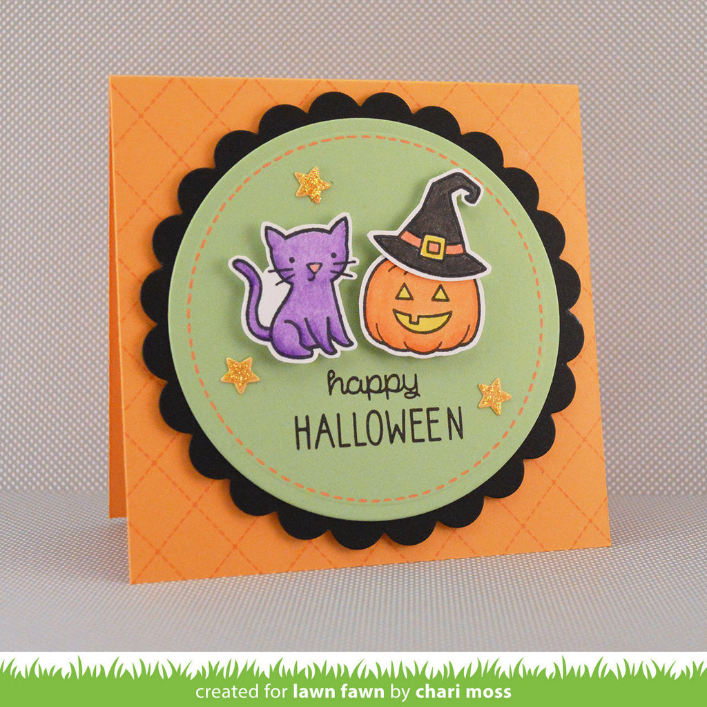 Get crafting with this spooktacular assortment of 21 clear stamps! This set features a cat, ghost, witch's hat, bat, jack-o-lantern, matching sentiments, and other Halloween treats.