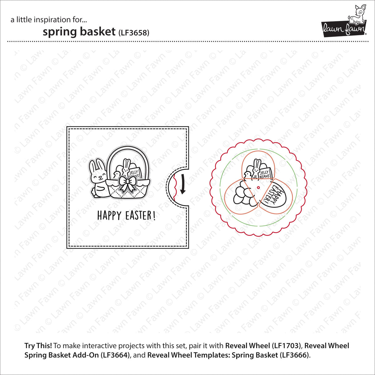 Coordinating set ideas: We have lots of Bunny Friends to help fill your Easter scenes! You can create a Reveal Wheel interactive card with an adorable die cut basket using Reveal Wheel Spring Basket Add-On. Use the Reveal Wheel Templates: Spring Basket to make stamping your basket images a breeze! The Reveal Wheel Spring Basket Drop-Down Add-On Set to take the guesswork out of lowering your basket image and for using it with Reveal Wheel Square Add-On.