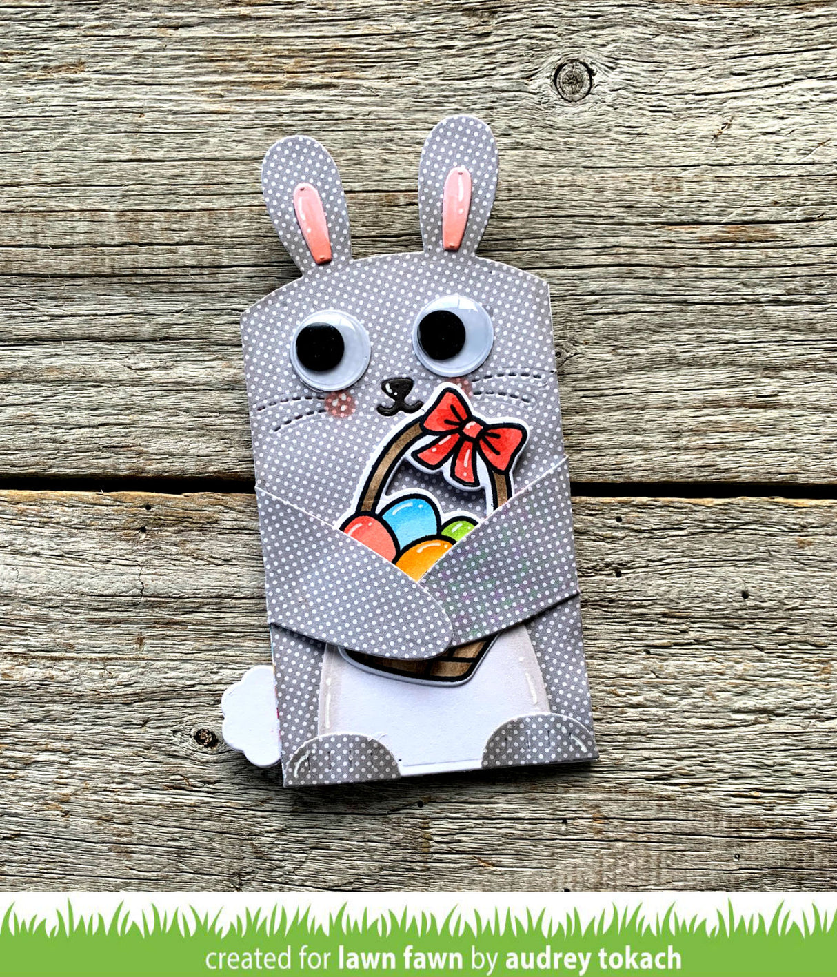 The cute springtime critters can’t wait to give you a hug! This set of dies contains everything you need to create a bunny, chick, and a ducky. These critters have arms/wings to “hug” a piece of candy or other small surprise.