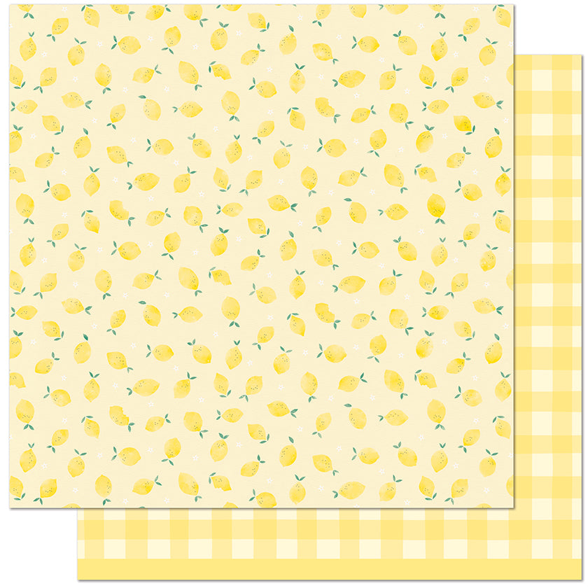 Squeeze the Day is a 12x12 inch patterned paper with a coordinating pattern on the reverse. Each pack contains 12 sheets of fun!