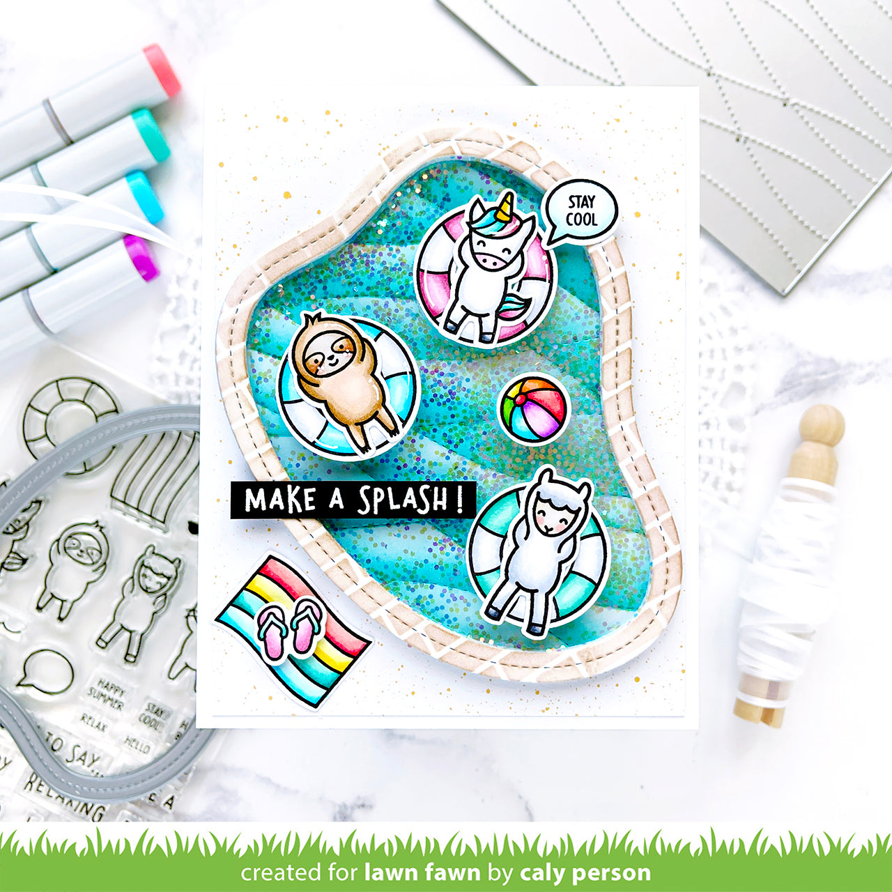 Coordinating set ideas: This full card size backdrop is perfect to pair with Pool Party or Flamingo Floatie. Use the stitching as a fun backdrop for sewing themed projects, just add Sewn with Love! It looks great as a backdrop for clean and simple cards, too!