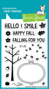 Have an awesome autumn with these 19 clear stamps! This set contains a tree, leaves, a cute frame, sentiments, and other stamps to coordinate with the Sweater Weather collection.