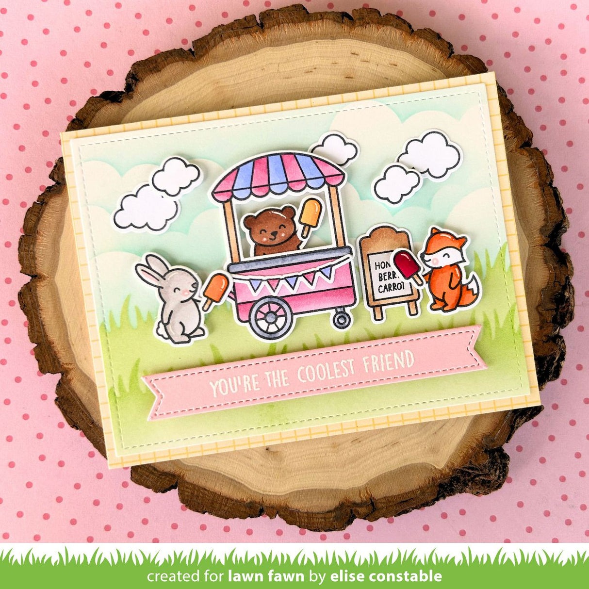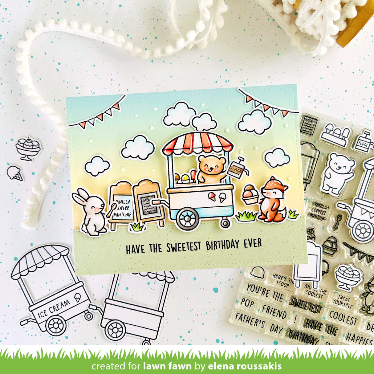 Add a sprinkle of sweetness to your summer cards and crafts! This treat cart is perfect for lots of occasions, and a super cool way to tell Dad he’s the best this Father’s Day! Need more delicious puns? Check out the Treat Cart Sentiment Add-On set with coordinating banner dies in the Treat Cart Sentiment Add-On Lawn Cuts.