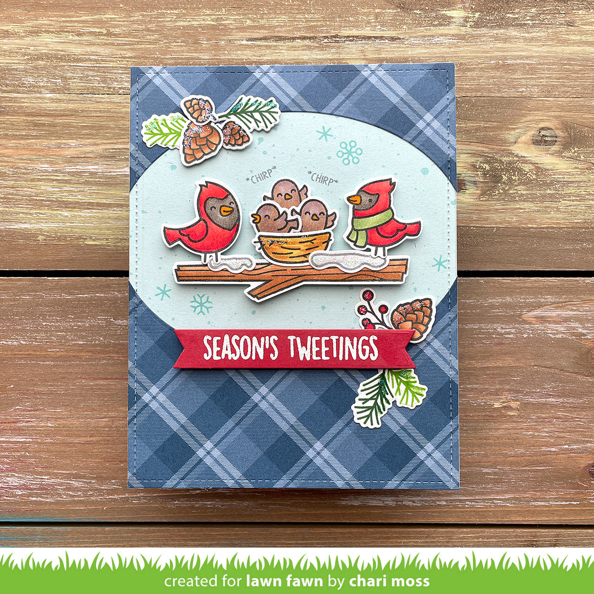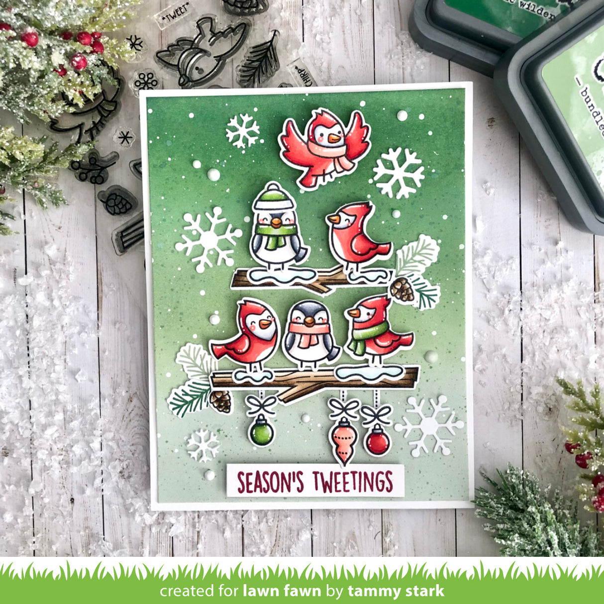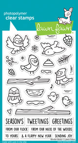 This family of winter birds will help tweet your greetings to all your loved ones this holiday season. Deck the included branches with pinecones, pine needles and berries, and a dusting of fresh snow. Use with the Winter Birds Add-On for more sentiments, feathered friends, and a home with festive details!