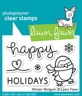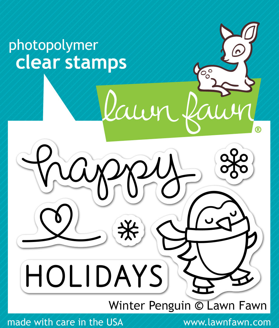 Your holidays will be happy with this cute penguin by your side! This set of five clear stamps has an ice skating penguin, snowflakes, and matching sentiments.