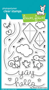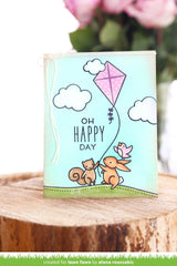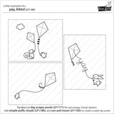 Coordinating set ideas: Pair this set with Big Scripty Words for extra loopy word “string” options. Use Stitched Kite to make a cute shaker card. Use Slide on Over for a cute interactive card with a kite sliding along a string. Use Simple Puffy Clouds, Simple Puffy Cloud Frames, and Sun and Moon to create a beautiful sky scene. Dress up the squirrel or bunny with the graduation cap and diploma from Smart Cookie to make a cute graduation card.