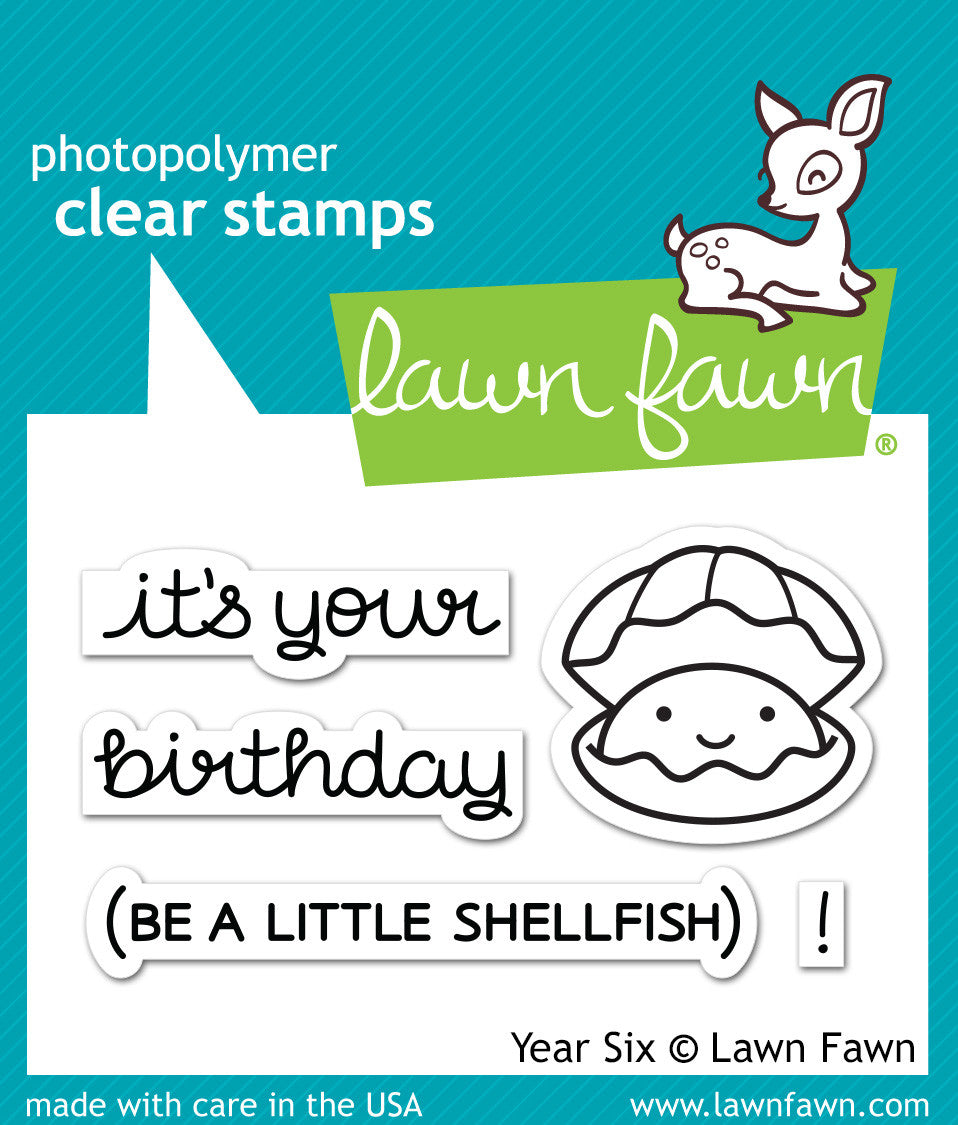 You're allowed to be a little shellfish on your birthday. This cute set of clear stamps was created to celebrate our sixth birthday!