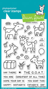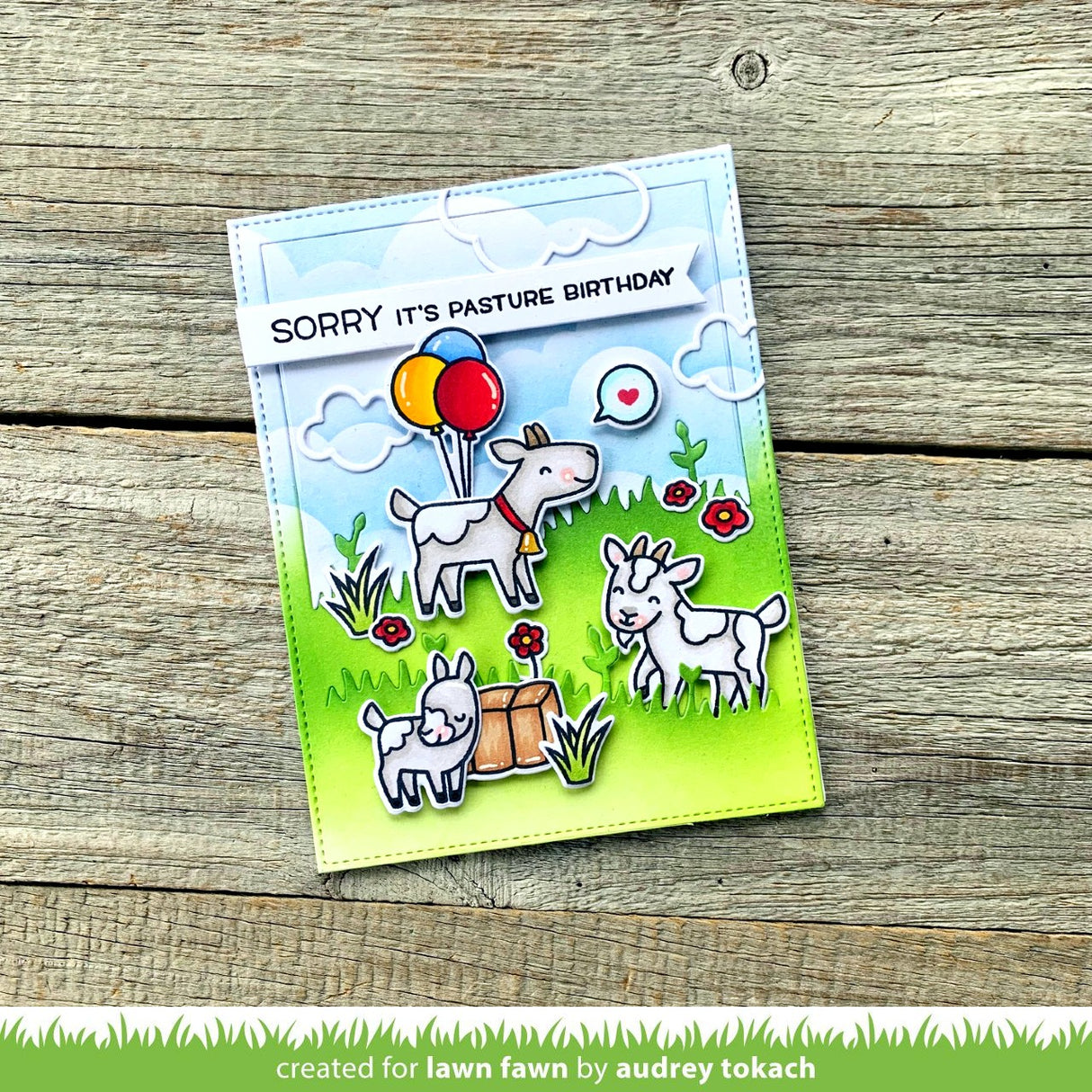 Coordinating set ideas: Pair this with Slimline Picket Fence Border and Slimline Stitched Hillside Borders to make a slimline card. Use Giant Happy Mother's Day and tuck some goats around it to tell mom she's the greatest of all time! Make a fun and interactive project with Platform Pop-Up and Platform Pop-Up Add-On.
