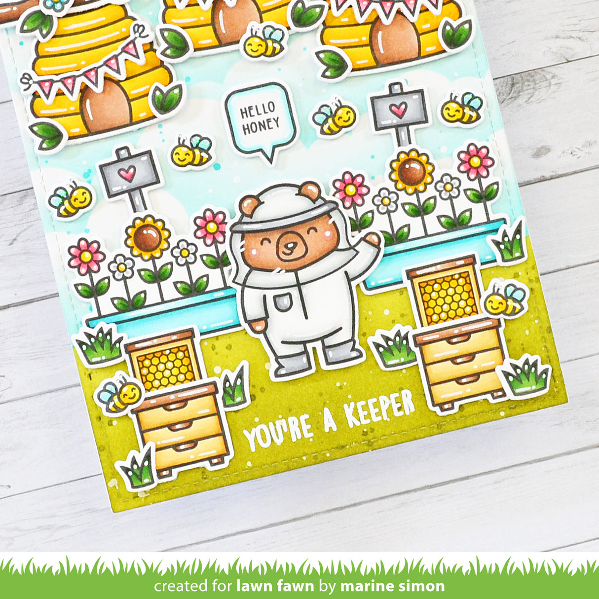 This adorable beekeeper bear is a perfectly sweet companion for all the busy bees in Hive Five and your bee themed projects!