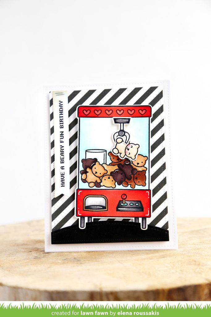 Coordinating set ideas: Use a frame from Stitched Square Frames to create a shaker card, with bears shaking inside the claw machine. Or, use Slide on Over to create a fun interactive card, with the claw sliding back and forth!